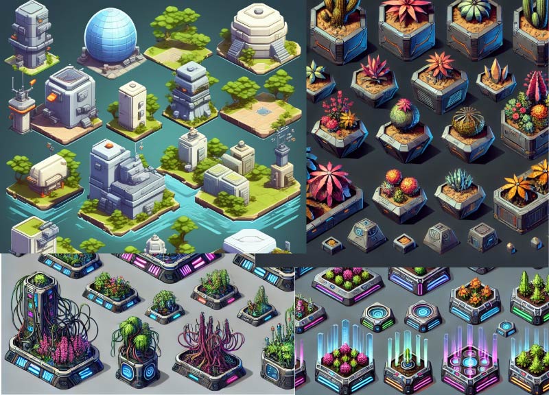 These objects serve as a functional gameplay objects, while visually connecting the Zone Rush game mode to Terraforming's (a casual game mode) core mechanics.