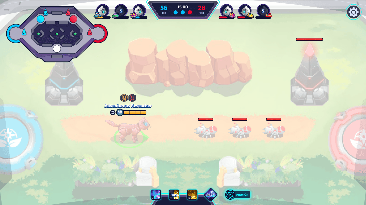 I designed the in-game HUD, establishing a layout with a mini map, top bar for player information, bottom ability bar, and health indicators for players, minions, and towers.